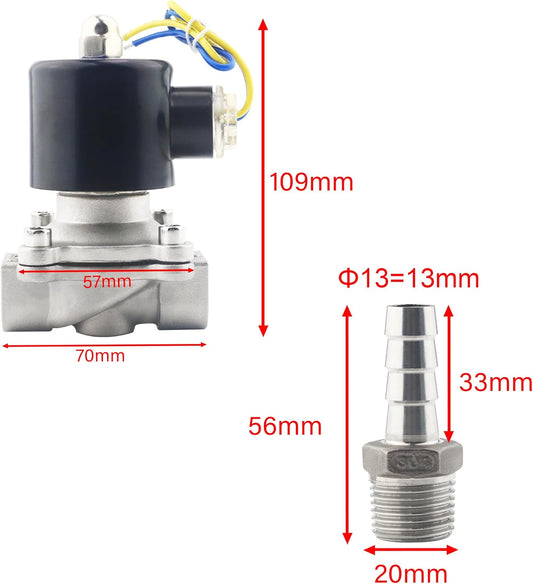 1/2 Inch Stainless Steel Electric Solenoid Valve 110V AC /12V DC Normally Closed, Includes of 2 Fittings, Tape, 2 Clamps, 1 Pair of Gloves for Water, Air, Diesel