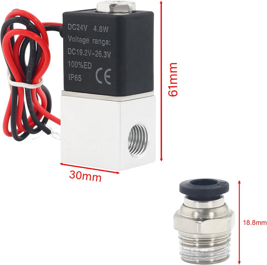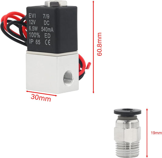 1/8" NPT 2 Way 2 Position Normally Closed DC 12V Electric Solenoid Air Valve, Includes of 2 Fittings, 1 Tape, 1 Pair of Gloves