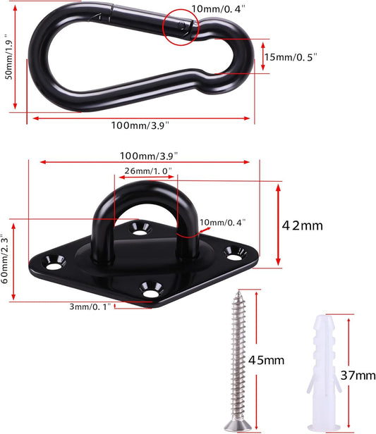 2PCS M10 Pad Eye Hooks Heavy Duty 304 Stainless Steel Pad Eye Hooks with Snap Hooks and Screws, Marine Grade Hardware Hooks for Hammock Hanging Kit, Swing Hanging, Wall/Ceiling Mount